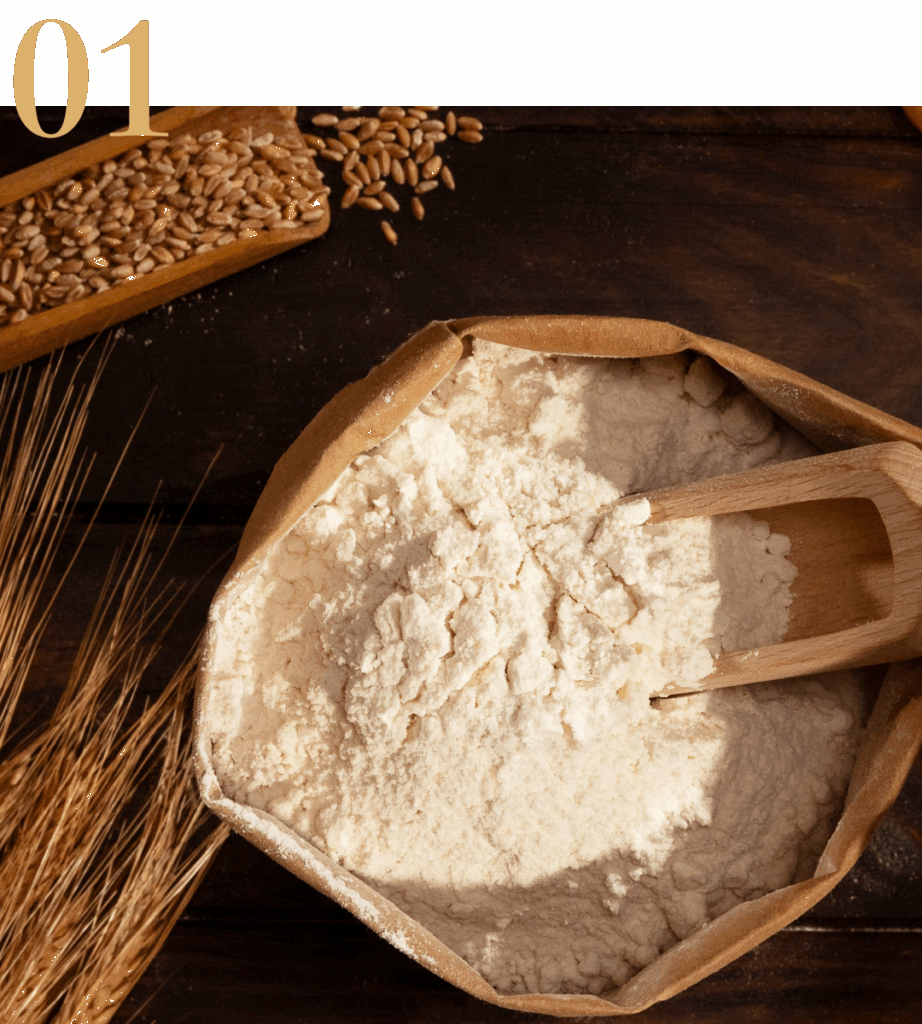 小麦粉をはじめ、製菓・製パン・製麺に必要な各種原材料を取り揃えています。